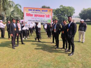 अवध लॉ कॉलेज बाराबंकी में गठित लीगल एंड क्लीनिक द्वारा विधिक जागरूकता रैली का आयोजन दिनांक 8.11.2025 दिन शनिवार को अवध लॉ कॉलेज बाराबंकी में गठित लीगल एंड क्लीनिक प्रभारी श्री लवकुश वर्मा जी के निर्देशन मैं विधिक जागरूकता रैली का आयोजन किया जिसका शुभारंभ डॉ सूर्यभान सिह द्वारा किया गया यह रैली कॉलेज परिसार से असैनी ग्राम सभा तक निकाली गई जिसका मुख्य विषय न्याय चला निधन से मिलने जिसमें कॉलेज के सभी लीगल वलिंटियर्स छात्र छात्राओं सहित प्रवक्तागण उपस्थित रहे ।